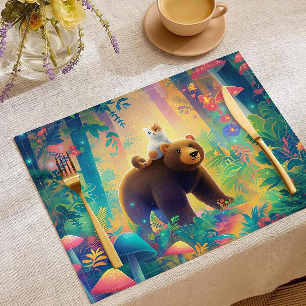 Fashion and brand new placemats fully show elegant, perfect for your dining table.These heat-resistant placemats effectively shield your table surface from hot plates, bowls, and dishes. Say goodbye to unwanted heat marks or unsightly stains on your beloved furniture!Specification:Material:Cotton LinenSize:18 x 12 inches (45 x 30 cm)Package Included: 2pcs/4pcs/6pcs/8pcs placematsoccasion:Party, Küche, DrinnenEasy to clean: Hand/machine washable.Features3D Pattern:The placemats are 3D printed with bright colors and clear images without fading. It is perfectly to provide decoration for your dining table,make you are in happy mood when eating and will help improve your dining experience and impress your guests.Material:We made upgrades to the material,Made of high quality Cotton Linen, soft, wrinkle-proof and heat resistant. Perfect to protect tabletop from food stains, scratches, rings, and heat damage.Great Gift:A perfect gift idea for your kids, mum, dad, sister, brother, grandma, wife, husband, and all other loved ones with many surprising designs. In our collection you will find a design for everyone and every interest. You can give it as a birthday, Christmas, New Year, Valentine's Day, Easter, Mother's Day, Father's Day, graduation, back to school gift, retirement gift and housewarming gift.Care Instructions: Machine washable in cold water. Do not bleach. Do not dry clean. Iron at low temperature if necessary.Function Description:1. Easy to replace and take care2. Have a good function of practicability and decorations. placed under fairly hot pot on dining table and often moving objects in the kitchen to avoid the desktop scratches3. It will help improve your dining experience and impress your guests
